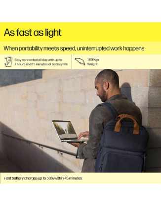 - 【Long battery life】Fast charge up to 50% in 45 mins. A durable 3-cell, 41Wh battery maximizes productivity, ensuring you charge once and work for up to 7 hours and 30 mins.