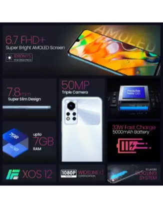 • 8 MP Front Camera Setup: Camera Feature: AI Cam, Beauty, Portrait, AR Shots, Short Video, Wideselfie, Timelapse, Video Features: Film, 2K Video Recording