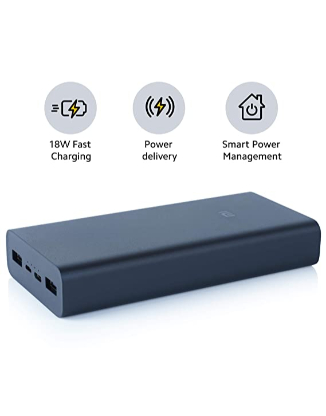 MI Power Bank 3i 20000mAh Lithium Polymer 18W Fast Power Delivery Charging | Input- Type C | Micro USB| Triple Output | Sandstone Black