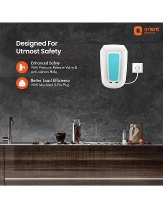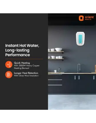 SONIPAT – 131029 ,HaryanaPacked & Marketed By: Orient Electric Limited Weight of the product/Item 3kg Voltage 230-240V Wattage 3000 W Item Dimension LxWxH (cm) 30.7×28.2×52.5 Indicator (LED / Neon) Neon Degree of Protection against Humidity IPX1 Outer Cabinet Material Plastic, PP Insulation Type Glass Wool Included Components 1 unit water heater, User Manual, Mounting fasteners, Multi function valve