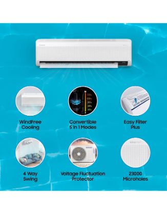 Buy Now- Split AC with inverter compressor: Variable speed compressor which adjusts power depending on heat load. Powered with 23000 microholes, you can enjoy powerful and gentle cooling. With Convertible 5in1 modes, you can change according to your mood and requirement
